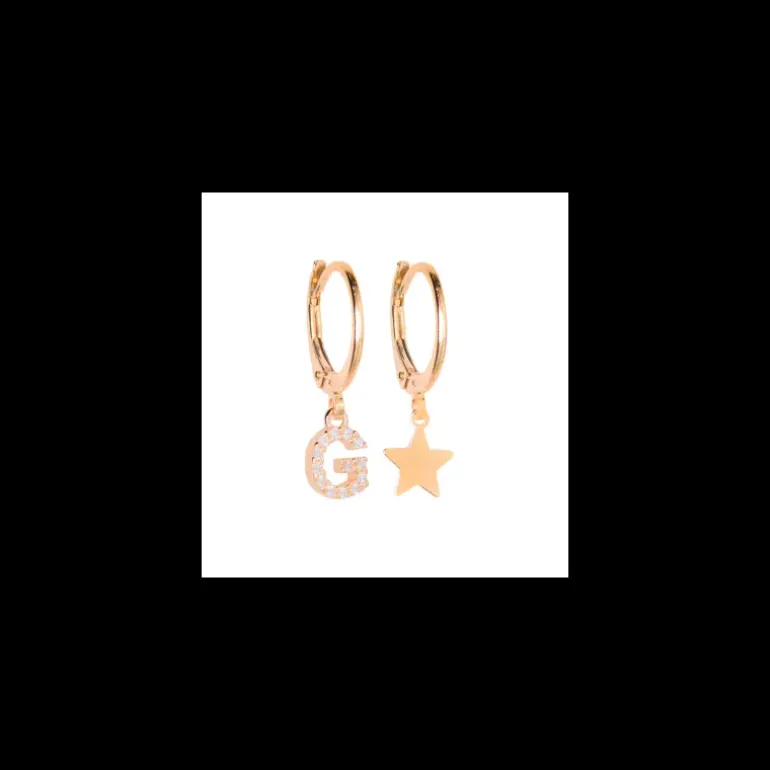 VERSARI – Orecchino con ciondolo iniziale F pavé e orecchino con stellina galvanica oro giallo