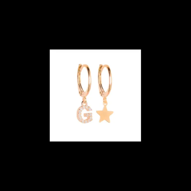 VERSARI – Orecchino con ciondolo iniziale G pavé e orecchino con stellina galvanica oro giallo