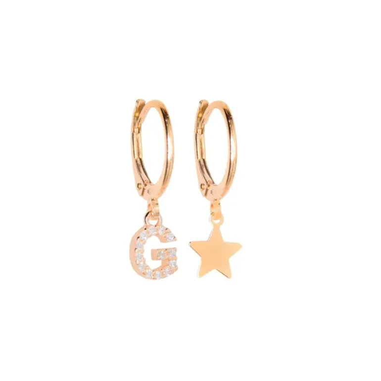 VERSARI – Orecchino con ciondolo iniziale R pavé e orecchino con stellina galvanica oro rosa