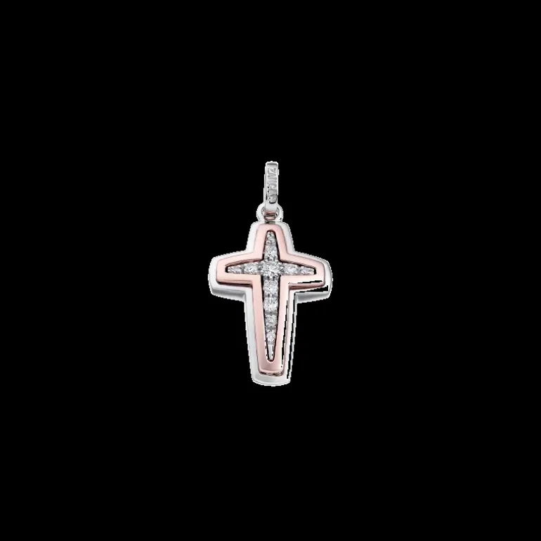 CROCE ORO BIANCO + ORO ROSA 18 KT + DIAMANTI BIANCHI CT. 0,16 CIRCA GR. 3,70 INSIGNIA COLLECTION